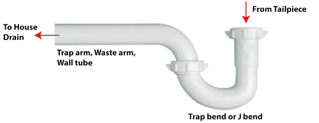 The P-trap is the curved pipe section located beneath the sink. In my opinion, this is the most important component of the entire kitchen sink drain system.