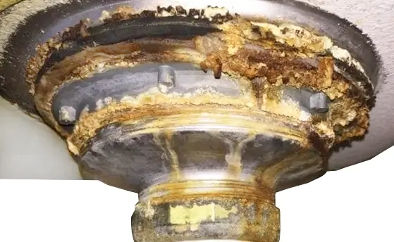 Over time, the plumber’s putty dries out, cracks, and loses its seal. Or the rubber gasket ages and shrinks. Once that happens, water leaks past the drain, corroding the cup and nut, strainer nut, or the spin-on device.