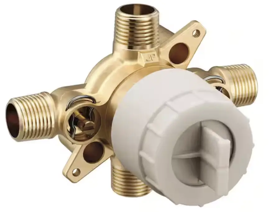 The 1222 cartridge incorporates a sliding spool that reacts instantly to pressure changes between the hot and cold supply lines. If cold-water pressure drops, the spool shifts to proportionally reduce hot-water flow, keeping the temperature stable. The key thing to understand is that the handle only rotates—it doesn’t control volume separately. As you turn it, you’re sweeping from full cold to full hot, and the valve automatically maintains a safe temperature regardless of what’s happening elsewhere in the plumbing system.