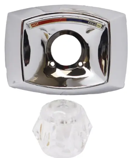 Handle: Acrylic knob — a multi-faceted, clear plastic knob. The valve can be converted to a lever style using a different ball and cam.