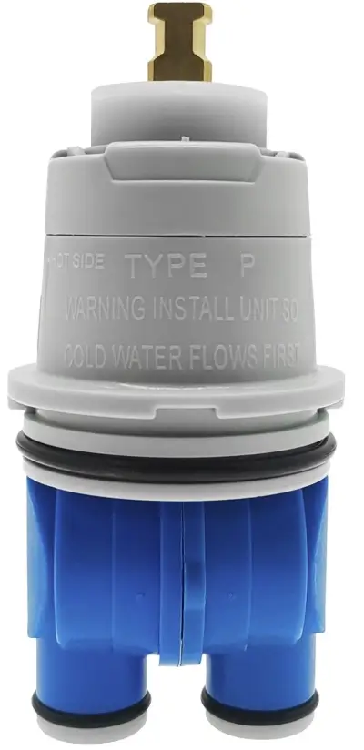 The standout feature of the 1700T series is its true thermostatic cartridge RP47201. Instead of simply balancing pressure, it uses a wax-and-spring temperature-sensing element that continuously measures the actual water temperature and automatically adjusts the hot and cold water to maintain it. This allows the valve to hold temperature within a very tight range (about ±3°F), even if there are changes in water supply temperature or pressure elsewhere in the house.