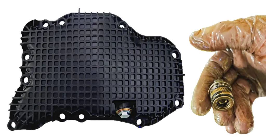 Overtighten the drain plug on a Nissan plastic engine oil pan and it’ll rip the insert right out of the pan