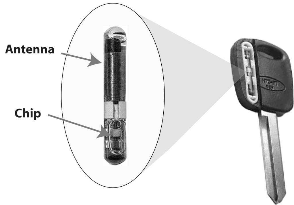 The antenna inside the key picks up the magnetic field emitted by the exciter module and uses that power to run the chip. Once powered, the chip transmits the digital signal back to the exciter module or another antenna, new to the lock cylinder.