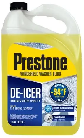 In the colder months, I use Prestone De-Icer Windshield Washer Fluid.