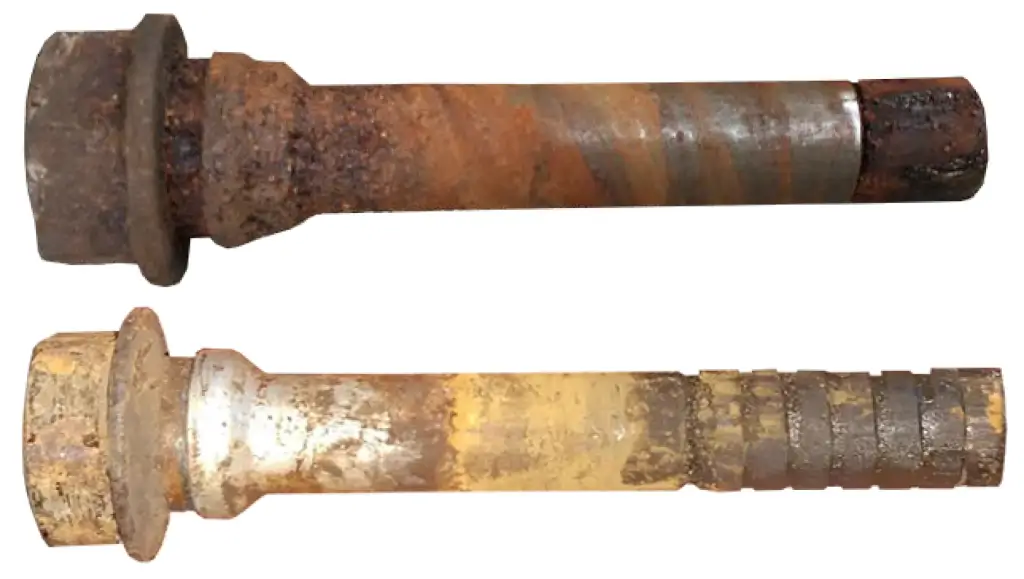 2) Seized caliper slide pin(s) — When the caliper pins seize, the caliper